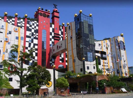 而在《名偵探柯南》里出現(xiàn)的垃圾處理廠也有真實場景。由宮崎駿的偶像百水先生進(jìn)行外觀設(shè)計的大阪舞洲島垃圾處理廠,遠(yuǎn)遠(yuǎn)看去仿佛游樂場,不知情的人絕不會把它和垃圾聯(lián)系在一起。處理廠干凈整潔、色彩明亮得恍若安徒生的童話世界,紅黃的條紋象征著燃燒的火焰,形態(tài)各異的可愛窗子與爬山虎裝點著墻壁,標(biāo)志性的長管煙囪令人想起長發(fā)公主的城堡……
