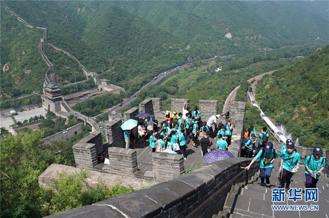 7月21日,參加“2019同心同根萬里行”活動的香港青少年在北京居庸關長城游覽。新華社記者鞠煥宗攝