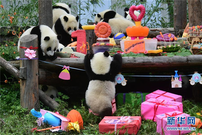 當日,在位于四川臥龍的中國大熊貓保護研究中心神樹坪基地的大熊貓幼兒園,2018年出生的18只大熊貓幼仔過了一場別開生面的集體生日。