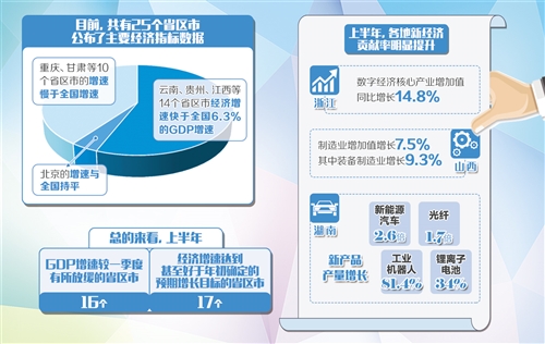 原標題:25個省區(qū)市陸續(xù)公布上半年“成績單”:各地經(jīng)濟運行平穩(wěn) 新興動能貢獻突出