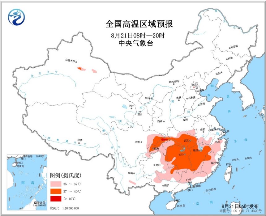 未來三天,西南地區(qū)東部、江漢、江南、華南中北部等地將有高溫天氣。中央氣象臺8月21日06時繼續(xù)發(fā)布高溫黃色預(yù)警。預(yù)計(jì)8月21日白天,江漢大部、江南大部、四川盆地東部、重慶、貴州東部、華南中北部等地最高氣溫35~36℃,其中,湖北中南部、湖南大部、江西大部、四川東北部、重慶大部、廣西東北部等地的部分地區(qū)最高氣溫37~39℃,重慶北部局地可達(dá)40℃以上。
