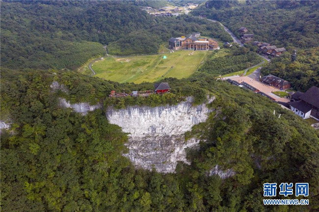 這是重慶金佛山風(fēng)景區(qū)(8月20日無(wú)人機(jī)航拍)。重慶市南川區(qū)的金佛山風(fēng)景區(qū)屬典型的喀斯特地貌,風(fēng)景秀美,吸引了不少游客。新華社記者劉潺攝