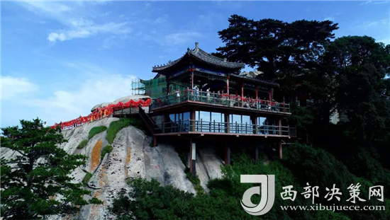 西北絕崖千丈,似刀削鋸截,其陡峭巍峨、陽(yáng)剛挺拔之勢(shì)是華山山形之代表,西峰為一塊完整巨石,渾然天成,海拔2082米,是華山最秀麗險(xiǎn)峻的山峰,又因峰巔有巨石形狀好似蓮花瓣,古代文人多稱其為蓮花峰、芙蓉峰。