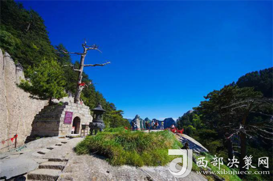 華山中峰居?xùn)|、西、南三峰中央,是依附在東峰西側(cè)的一座小峰,今人將它列為華山主峰之一。峰上林木蔥蘢,環(huán)境清幽,奇花異草多不知名,游人穿行其中,香浥禁袖。