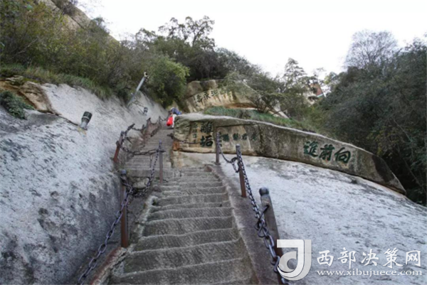 千百年前,陡峭如削的華山,艱險異常,難以登攀,只能“望山興嘆”“遠而望之”。后來人們循猿徑,依山就勢,巧妙地利用天設地造的石隙嶺脊,開鑿出了登山道路,始有天下奇觀“自古華山一條路”。