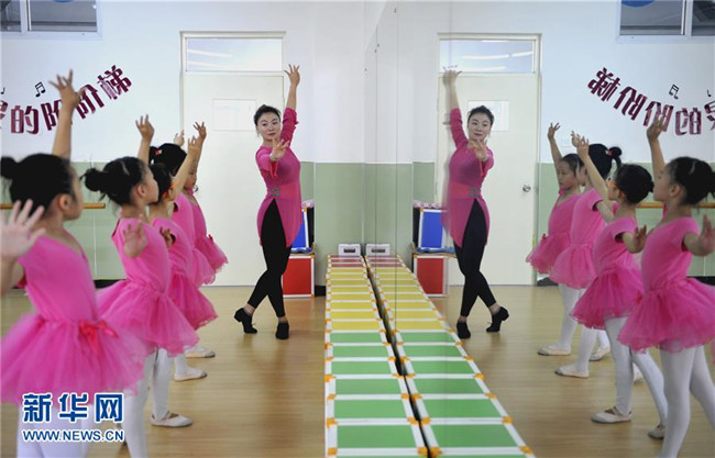 9月5日,在承德市雙橋區(qū)東園林小學(xué),學(xué)生在老師的指導(dǎo)下學(xué)習(xí)舞蹈。