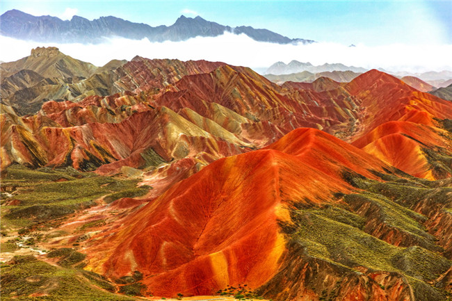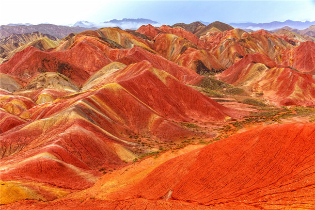 9月9日,甘肅張掖七彩丹霞旅游景區(qū)。一場(chǎng)小雨剛剛飄過,整個(gè)景區(qū)如同燃燒了萬年的火焰,更加艷麗、熱烈而磅礴。位于祁連山北麓臨澤、肅南縣境內(nèi),距張掖市區(qū)30公里、臨澤城區(qū)20公里,分布面積約50平方公里的七彩丹霞景區(qū),是中國(guó)北方干旱地區(qū)發(fā)育最典型的丹霞地貌及國(guó)內(nèi)唯一的丹霞地貌與彩色丘陵景觀復(fù)合區(qū)。先后被評(píng)為“中國(guó)最美的七大丹霞”“中國(guó)最美的六處奇異地貌”“世界十大神奇地理奇觀”和全球最刻骨銘心的22處風(fēng)景之一,現(xiàn)為國(guó)家地質(zhì)公園、國(guó)家4A級(jí)旅游景區(qū)和省級(jí)風(fēng)景名勝區(qū)。