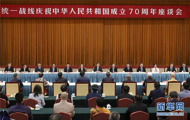 統(tǒng)一戰(zhàn)線慶祝中華人民共和國成立70周年座談會11日在京召開。中共中央政治局常委、全國政協(xié)主席汪洋出席會議并講話。他強調,統(tǒng)一戰(zhàn)線是中國共產(chǎn)黨領導的廣泛政治聯(lián)盟,具有鮮明的中國特色,過去是、現(xiàn)在是、今后仍然是黨的事業(yè)取得勝利的重要法寶。要以習近平新時代中國特色社會主義思想為指導,深入學習貫徹習近平總書記關于加強和改進統(tǒng)一戰(zhàn)線工作的重要思想,切實把中共中央對統(tǒng)一戰(zhàn)線的決策部署落實下去、把廣大統(tǒng)一戰(zhàn)線成員的智慧力量凝聚起來,為實現(xiàn)中華民族偉大復興的中國夢共同奮斗。