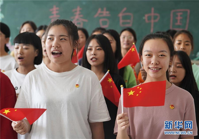 當(dāng)日,河北省邢臺技師學(xué)院開展“青春告白中國”活動,學(xué)生們通過唱歌、快閃、專業(yè)課程等形式,表達(dá)對祖國的熱愛和祝福。 新華社記者 邢廣利 攝