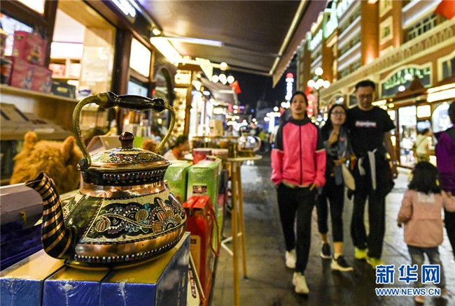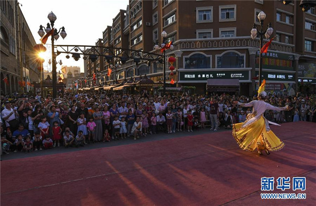 人聲鼎沸的大巴扎景區(qū),歡快的歌舞,豐富的美食,每天吸引著10余萬海內(nèi)外游客匯聚于此。夜愈深,霓虹愈璀璨,映照著一張張笑臉。