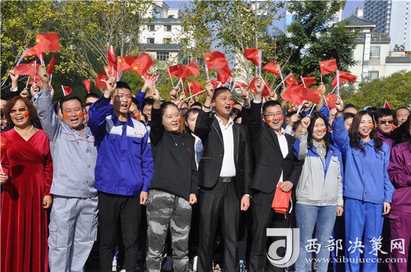 快閃現(xiàn)場(chǎng),一位位身著工服或民族服裝的職工以及佩戴獎(jiǎng)?wù)潞褪趲У膭谀?、先進(jìn)人物1000多名各行業(yè)職工,揮舞著手中的國旗,用快閃的形式,唱響《我和我的祖國》,用職工群眾的深情告白為祖國慶生、為新時(shí)代喝彩。