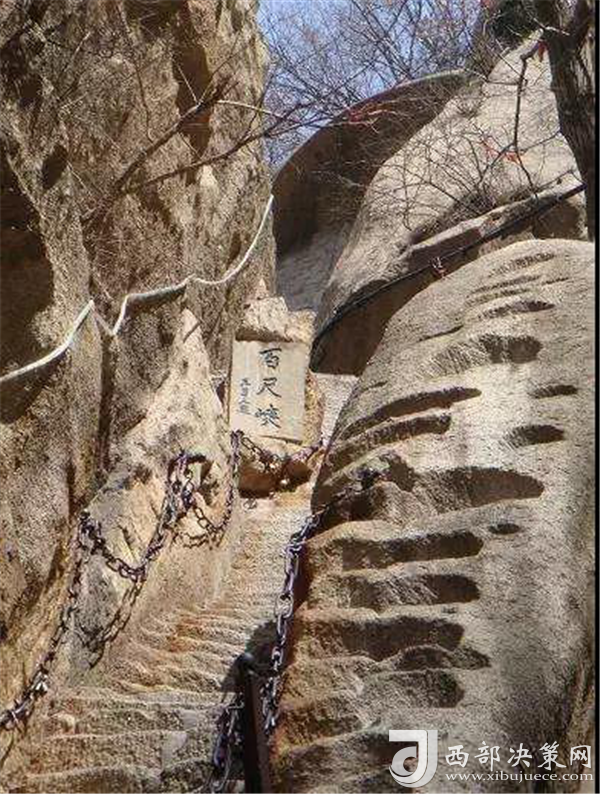 華山著名險(xiǎn)道之一,它莽莽蒼蒼,嶺呈蒼黑色,筆直插天,好似蒼龍騰空,所以被稱為“蒼龍嶺”。