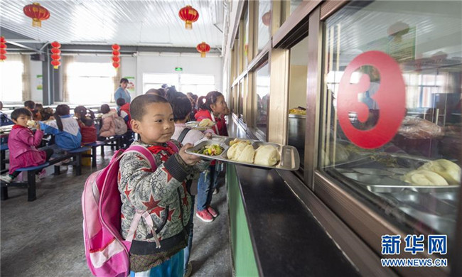 自實(shí)施農(nóng)村義務(wù)教育學(xué)生營(yíng)養(yǎng)改善計(jì)劃以來(lái),寧夏回族自治區(qū)積極為農(nóng)村學(xué)子提供免費(fèi)的營(yíng)養(yǎng)餐。從去年開(kāi)始,寧夏固原市西吉縣的免費(fèi)營(yíng)養(yǎng)午餐迎來(lái)了升級(jí)換代,從原來(lái)的一道燴菜變成了如今的兩素一葷,餐具由餐桶換成了餐盤。在保證營(yíng)養(yǎng)膳食搭配的同時(shí),增加了學(xué)生的自主選擇性。從“吃得飽”到“吃得好”,升級(jí)換代的營(yíng)養(yǎng)餐得到了廣大學(xué)生認(rèn)可。 新華社發(fā)(楊植森 攝)