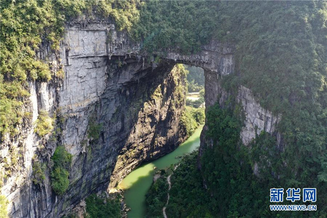 這是廣西羅城國(guó)家地質(zhì)公園天門山山洞(11月7日無人機(jī)拍攝)。