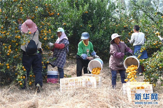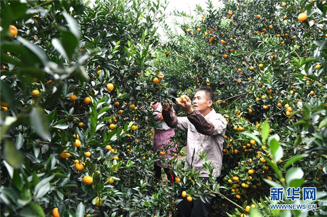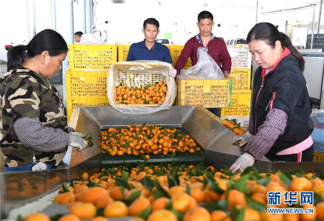 時(shí)下正是廣西鹿寨縣平山鎮(zhèn)數(shù)萬畝柑桔成熟上市的季節(jié)。據(jù)悉,2018年平山鎮(zhèn)柑桔產(chǎn)值3.29億元,隨著當(dāng)?shù)馗探鄯N植面積不斷擴(kuò)大,柑桔產(chǎn)業(yè)成為村民脫貧致富的重要產(chǎn)業(yè)。 新華社記者 周華 攝