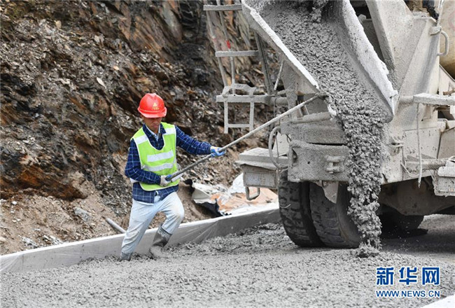 11月19日,在廣西融水苗族自治縣四榮鄉(xiāng),工人在羅融二級公路建設(shè)現(xiàn)場施工。 新華社記者 黃孝邦 攝