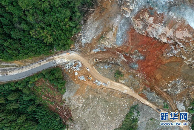 這是位于廣西融水苗族自治縣四榮鄉(xiāng)境內(nèi)在建的羅融二級公路(11月19日無人機拍攝)。 新華社記者 黃孝邦 攝