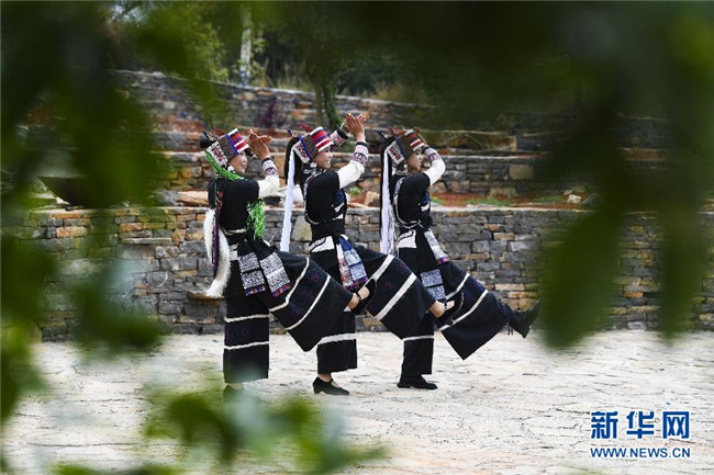 11月28日,大糯黑村村民在進行彝族大三弦舞表演。新華社記者王全超攝