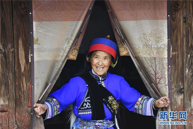 11月28日,65歲的大糯黑村村民王光英走出屋門。新華社記者王全超攝