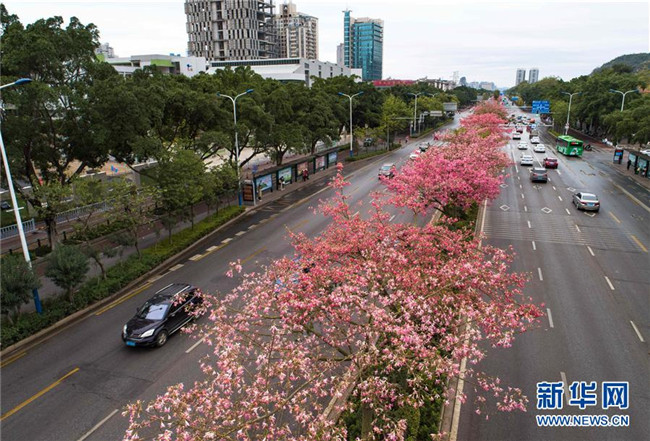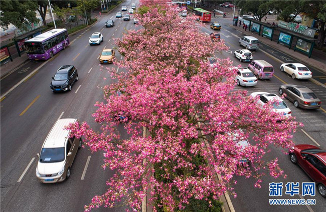 初冬時節(jié),廣西柳州市區(qū)東環(huán)大道、桂柳路等多條道路旁的1萬多株美麗異木棉進(jìn)入花期,競相綻放的紅色花朵將城市裝扮得格外美麗。 近年來,廣西柳州對城市進(jìn)行花化、彩化、香化,著力打造生態(tài)花園城市景觀。