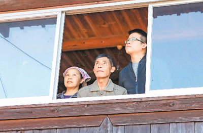 楊昌儒(中)一家人在搬家前朝窗外遠眺。