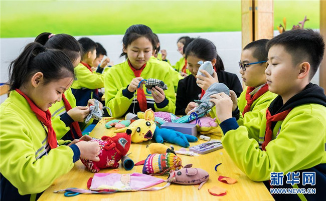 當(dāng)日,內(nèi)蒙古呼和浩特市玉泉區(qū)通順街小學(xué)“巧手社團(tuán)”的學(xué)生在老師的指導(dǎo)下,利用身邊的布頭、絲綿等廢棄物,制作生肖鼠布藝作品,表達(dá)對新年的美好祝愿。近年來,玉泉區(qū)教育部門大力推動“傳統(tǒng)文化進(jìn)校園”活動,在當(dāng)?shù)貙W(xué)校里開設(shè)剪紙、面塑、戲曲等民間藝術(shù)課程,讓學(xué)生感受傳統(tǒng)文化的魅力。 新華網(wǎng) 發(fā)(丁根厚 攝)