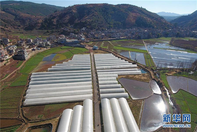 這是1月9日拍攝的云南省富民縣散旦鎮(zhèn)漢營村草莓種植基地(無人機(jī)照片)。新華社記者楊宗友攝