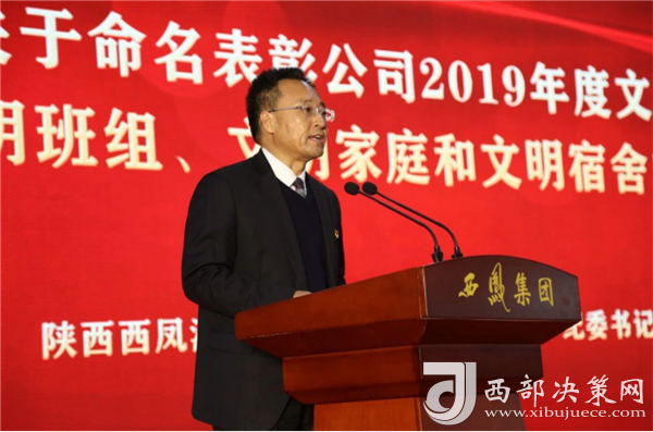 西鳳集團公司黨委副書記、紀委書記劉周虎宣讀《關于命名表彰公司2019年度文明單位、文明班組、文明家庭和文明宿舍的決定》