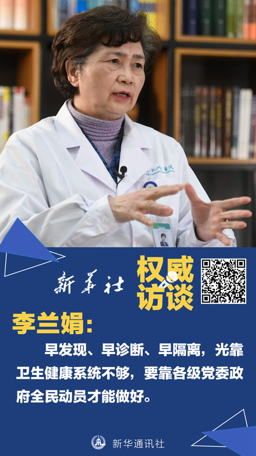 新型冠狀病毒感染的肺炎疫情每一天、每一點(diǎn)變化都牽動(dòng)人心。1月29日,“新華視點(diǎn)”記者專訪了中國工程院院士、國家衛(wèi)生健康委高級(jí)別專家組成員李蘭娟。她說,對傳染病思想上永遠(yuǎn)不能松懈。依靠各級(jí)黨委政府全民總動(dòng)員,依靠廣大專業(yè)的醫(yī)務(wù)人員,我們一定能勝利。