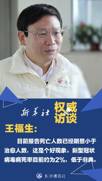 王福生:死亡人數(shù)現(xiàn)在已經(jīng)比治愈人數(shù)少,這是一個(gè)好的現(xiàn)象。但總的來說,死亡人數(shù)主要是來自于新型冠狀病毒感染的重癥病人和危重癥病人,總體病死率也就在2%左右,并不是特別高。