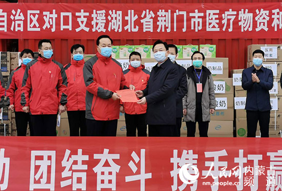 內(nèi)蒙古自治區(qū)對(duì)口支援湖北省荊門市醫(yī)療物資和生活物資捐贈(zèng)儀式