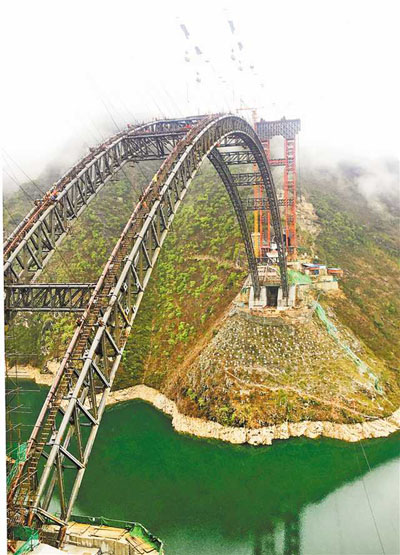 2月28日,鄭萬高鐵巫山段大寧河雙線大橋正式復(fù)工建設(shè)。在建設(shè)現(xiàn)場,工人們有的在裝卸建材,有的在大橋鋼管拱肋上作業(yè)。通訊員 盧先慶 攝