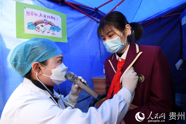“學(xué)生進(jìn)校之前,要對(duì)學(xué)生和全體教職員工建起一人一檔的健康檔案,了解學(xué)生和他的家庭成員以及親密接觸人員的健康狀況,進(jìn)行逐一排查。到學(xué)生進(jìn)校的時(shí)候,對(duì)每一位學(xué)生,每一位教職員工都要進(jìn)行體溫檢測,還要讓他們掃‘貴州健康碼’,了解學(xué)生的行蹤和健康狀況,保障學(xué)生在學(xué)校里面健康學(xué)習(xí)。”宋旗學(xué)校校長陳孝勇說。