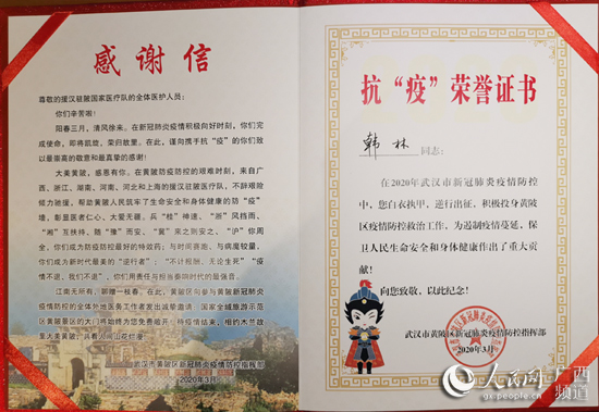 韓林收到的抗擊疫情榮譽(yù)證書(shū)。韓林供圖