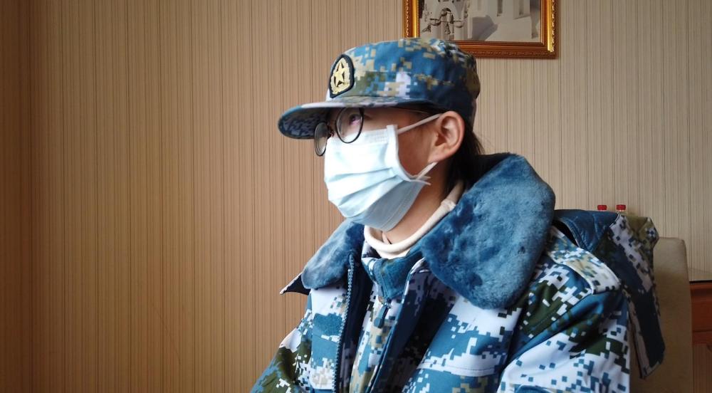 圖為解放軍援助湖北醫(yī)療隊(duì)隊(duì)員呂蓉在接受采訪。