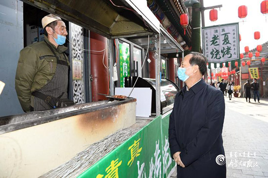 3月29日,自治區(qū)黨委書記、人大常委會主任石泰峰在呼和浩特市玉泉區(qū)塞上街了解商戶經營情況。內蒙古日報社融媒體記者 袁永紅 攝