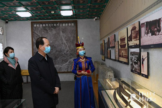 石泰峰參觀昭君博物院、將軍衙署博物院、內蒙古博物院,考察大召文化旅游項目,查看疫情防控舉措,了解復館復業(yè)情況。他說,內蒙古歷史文化源遠流長、底蘊深厚,具有獨特魅力和吸引力。要深入挖掘歷史文化內涵,突出民族和地域特色,體現(xiàn)時代特征,促進文化和旅游深度融合,推動實現(xiàn)高質量發(fā)展。要高度重視保護各類文物資源,發(fā)揮好文物承載燦爛文明、傳承歷史文化的重要作用。