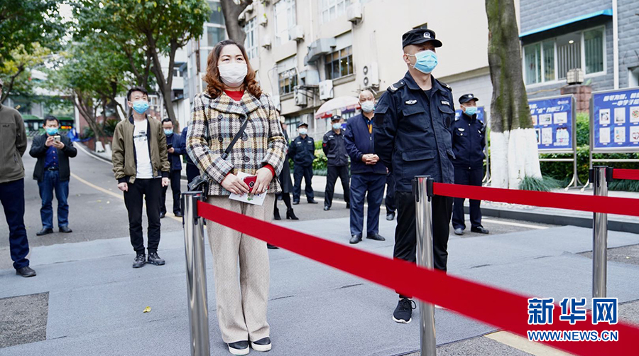 在重慶市第一中學,學生返校時須由值班人員引導指揮,在校門外有序排隊,相互間保持一米的距離,并從專用通道依次有序進入。圖為學校老師演習進校場景。新華網發(fā)