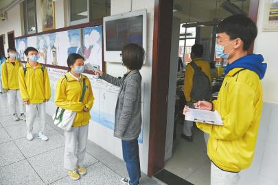 成都高新實(shí)驗(yàn)中學(xué)高三學(xué)生排隊(duì)測(cè)量體溫進(jìn)入教室。