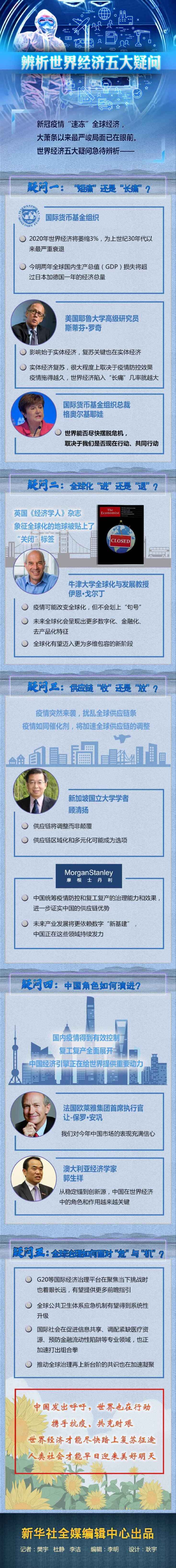 世界經(jīng)濟(jì)能否很快復(fù)蘇?全球化、供應(yīng)鏈將會(huì)怎樣演變?全球抗疫是否催生機(jī)遇?這些重大問(wèn)題,關(guān)乎人類福祉,關(guān)乎世界未來(lái)。