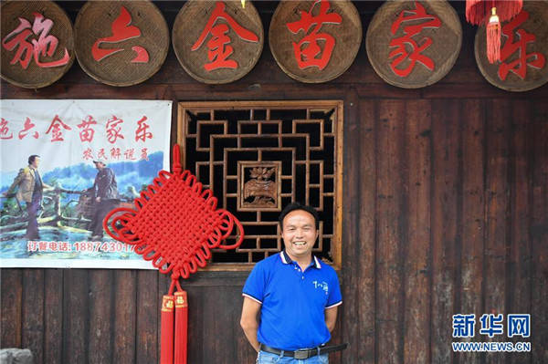 這是施六金在他的農(nóng)家樂前留影(4月25日攝)。1973年出生于十八洞村的施六金,由于父親患病很早就放棄學(xué)業(yè)和母親扛起了家庭的重?fù)?dān)。為了生活,他還曾遠(yuǎn)去東南亞打工。2015年,看到家鄉(xiāng)的變化,施六金回到村里開起了農(nóng)家樂,年度家庭人均純收入也從2014年的1715元增長到了2019年的35696元。2018年,施六金與心愛的人組建了家庭。今年初,施六金與愛人迎來了一個大胖小子。“做人做事要懂得回報和感恩。”施六金給剛出生的兒子取名施澤恩。新華社記者薛宇舸攝
