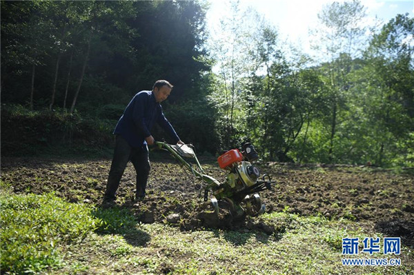 施六金在田間翻耕(4月24日攝)。1973年出生于十八洞村的施六金,由于父親患病很早就放棄學(xué)業(yè)和母親扛起了家庭的重?fù)?dān)。為了生活,他還曾遠(yuǎn)去東南亞打工。2015年,看到家鄉(xiāng)的變化,施六金回到村里開起了農(nóng)家樂,年度家庭人均純收入也從2014年的1715元增長到了2019年的35696元。2018年,施六金與心愛的人組建了家庭。今年初,施六金與愛人迎來了一個大胖小子。“做人做事要懂得回報和感恩。”施六金給剛出生的兒子取名施澤恩。新華社記者薛宇舸攝