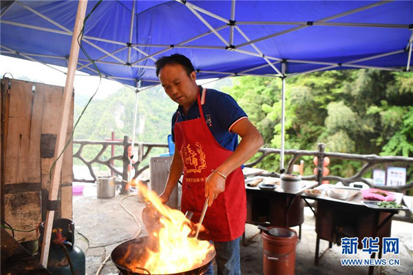 施六金在自家開的農(nóng)家樂為客人準(zhǔn)備午餐(4月25日攝)。1973年出生于十八洞村的施六金,由于父親患病很早就放棄學(xué)業(yè)和母親扛起了家庭的重?fù)?dān)。為了生活,他還曾遠(yuǎn)去東南亞打工。2015年,看到家鄉(xiāng)的變化,施六金回到村里開起了農(nóng)家樂,年度家庭人均純收入也從2014年的1715元增長到了2019年的35696元。2018年,施六金與心愛的人組建了家庭。今年初,施六金與愛人迎來了一個大胖小子。“做人做事要懂得回報和感恩。”施六金給剛出生的兒子取名施澤恩。新華社記者薛宇舸攝