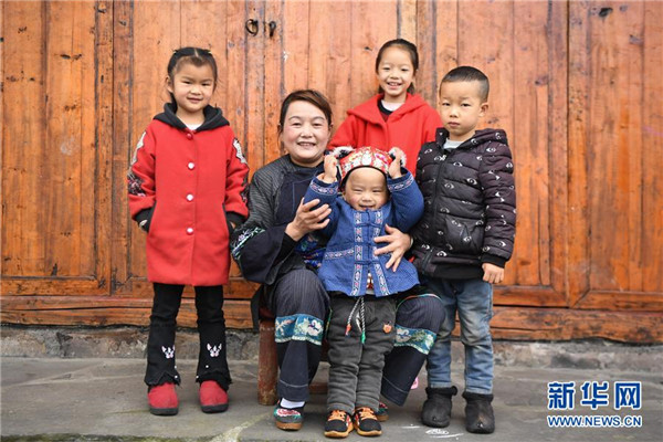 這是4月24日拍攝的吳美金(左二)和她孫子孫女的合影。1967年出生的吳美金,1992年嫁入飛蟲村(現(xiàn)十八洞村飛蟲寨)時,只有爛泥路的飛蟲村不僅田土少,掙錢活路也少,生活十分困難。2014年,吳美金加入了十八洞村苗繡特產(chǎn)農(nóng)民專業(yè)合作社,從小就會的苗繡傳統(tǒng)手藝如今成了家庭增收的法寶,不僅在家門口就把錢掙了,同時還能照顧年幼的孫子孫女。“現(xiàn)在的日子,比年輕的時候好多了。”吳美金說。新華社記者薛宇舸攝