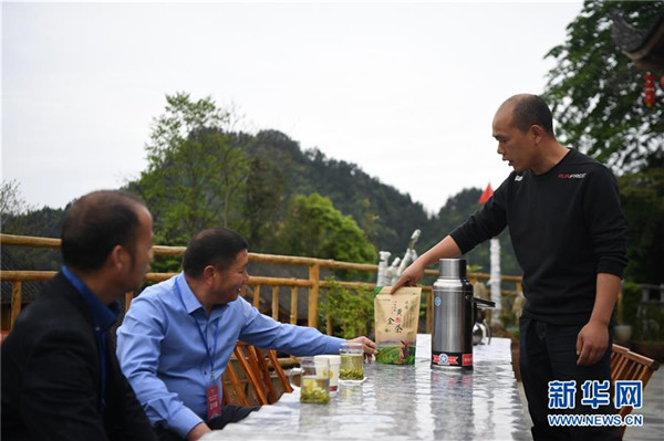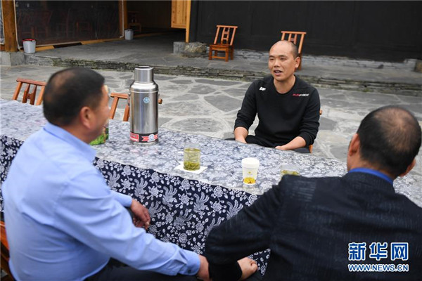 楊正邦(右)在為來自浙江的住客介紹十八洞村種植的“黃金茶”(4月25日攝)。楊正邦1978年出生于十八洞村,在外打工多年。近些年,眼看來十八洞村的游客越來越多,村里越來越熱鬧,楊正邦在2017年結(jié)束自己的打工生涯回鄉(xiāng)發(fā)展。他先是在村里擺起小吃攤,2018年開起農(nóng)家樂,去年又搭起新房子擴建成民宿,年度家庭人均純收入從2014年的1923元增加到2019年的7173元。新華社記者薛宇舸攝