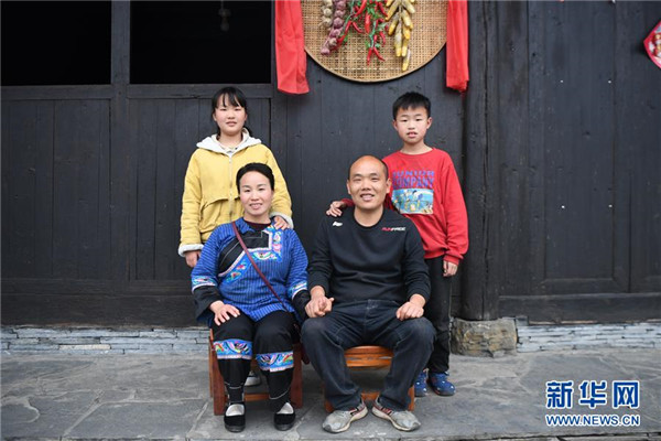 這是4月25日拍攝的楊正邦(前右)一家的合影。楊正邦1978年出生于十八洞村,在外打工多年。近些年,眼看來十八洞村的游客越來越多,村里越來越熱鬧,楊正邦在2017年結(jié)束自己的打工生涯回鄉(xiāng)發(fā)展。他先是在村里擺起小吃攤,2018年開起農(nóng)家樂,去年又搭起新房子擴建成民宿,年度家庭人均純收入從2014年的1923元增加到2019年的7173元。新華社記者薛宇舸攝