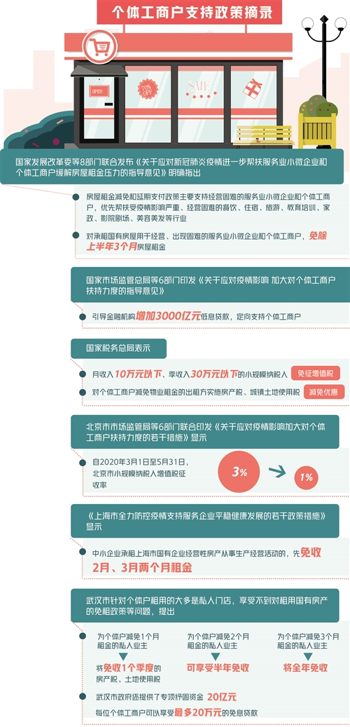 顯而易見,房租是個體工商戶最大的成本。黨中央、國務院一直高度關注中小微企業(yè)、個體戶的房租減免問題,并作出多次部署。早在疫情暴發(fā)初期,市場監(jiān)管總局等六部門出臺的《關于應對疫情影響 加大對個體工商戶扶持力度的指導意見》就提出鼓勵各地結(jié)合實際減免個體工商戶房租。