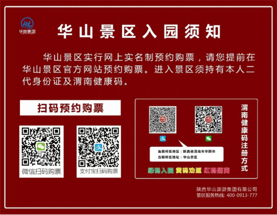 1、華山景區(qū)步行登山道(華山門)于今日(2020年5月15日)正式開放,每日最大限流1000人,運營時間為7:00至15:00。景區(qū)門票預(yù)約政策從原來的三天可預(yù)約改為七天可預(yù)約,開放當(dāng)日售票,根據(jù)庫存上限,售完即停。