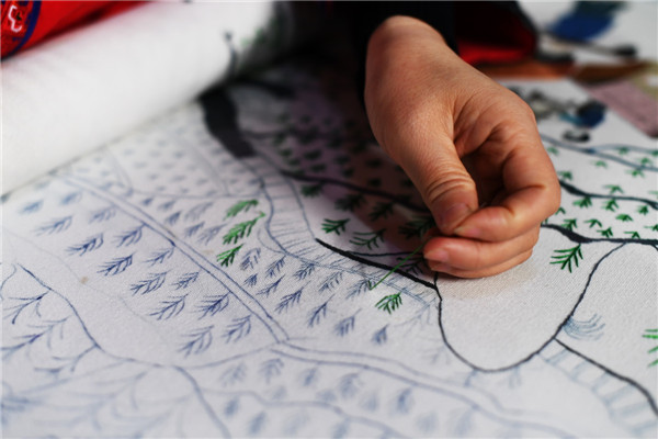 35歲的貧困戶張小容,因為丈夫意外受傷不能勞動,一個人扛起了家庭的重擔。經(jīng)過培訓,現(xiàn)在她在苗繡工藝品公司上班,下班回家后還要加班繡香囊,每月有近3000元的收入。70多歲的婆婆有一次專門來公司看她,回家后再也不讓兒媳婦洗碗,怕傷到兒媳婦做苗繡的雙手。張小容說,能在照顧家人的同時增加收入,給了她堅持的希望。