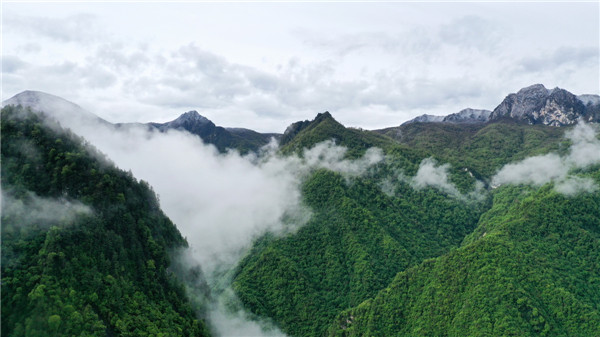 這是5月27日拍攝的雨后云霧繚繞的岷山(無人機照片)。